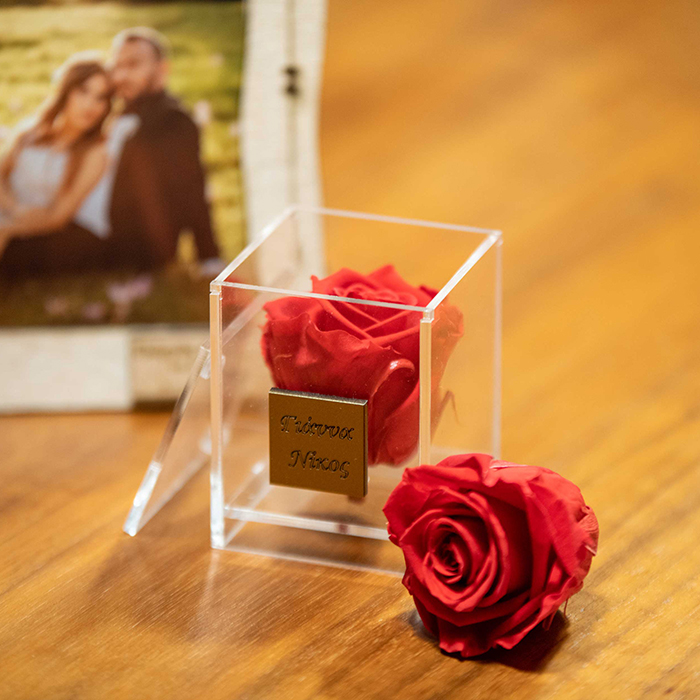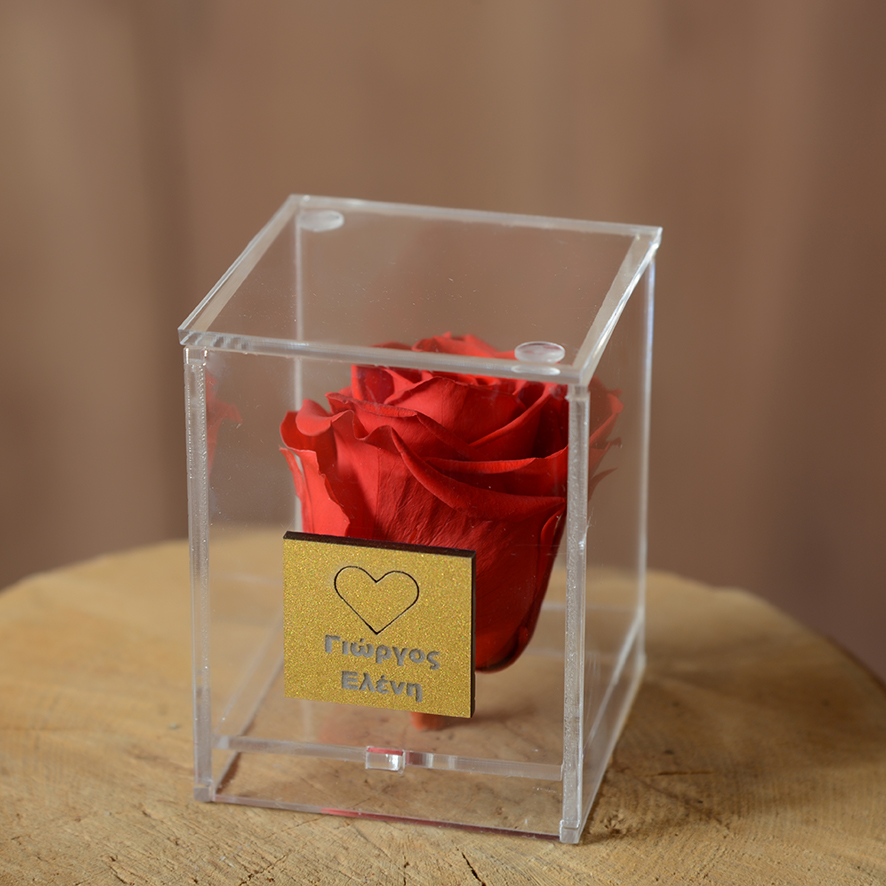 Αποχυμωμένα τριαντάφυλλα, τοποθετημένα σε εντυπωσιακό διάφανο κουτί .