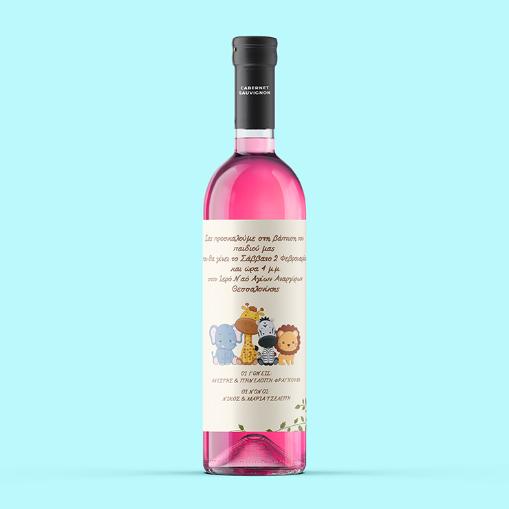 Μία αυτοκόλλητη ετικέτα που θα διακοσμήσει τα μπουκάλια των κρασιών σας προσαρμοσμένη στο θέμα της βάπτισής σας.