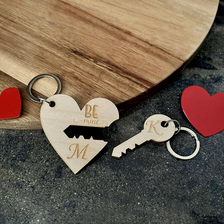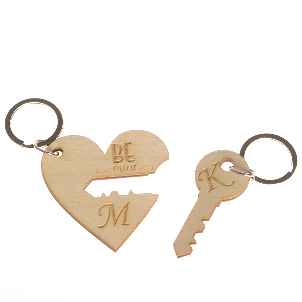 Διπλό Ξύλινο Μπρελόκ Καρδιά για εσάς και τον αγαπημένο σας με χάραξη