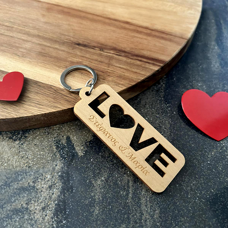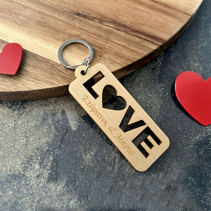 Ξύλινο Μπρελόκ για εσάς και τον αγαπημένο σας με χάραξη.