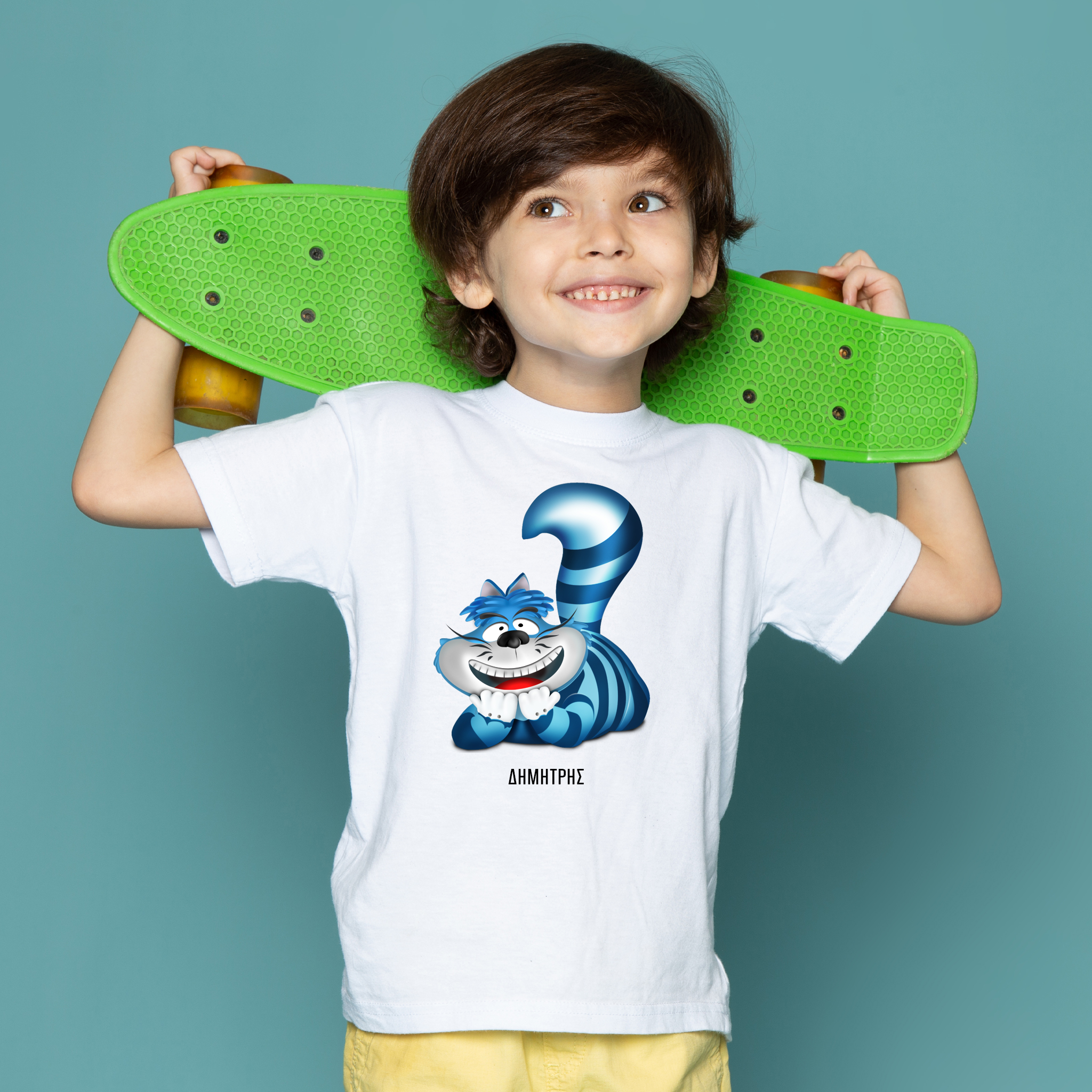 Παιδικό κοντομάνικο μπλουζάκι με στάμπα. Διαθέσιμο σε λευκό χρώμα. Έχεις τη δυνατότητα να γράψεις το δικό σου custom κείμενο ή όνομα, και θα τυπωθεί όπως το demo που θα δεις στην εικόνα προϊόντος.
