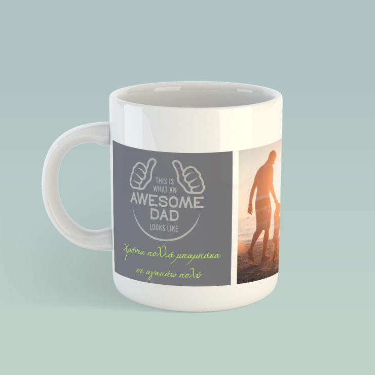 Διάλεξε την αγαπημένη σου φωτογραφία και εκτύπωσέ τη σε μία κούπα για να δείξεις την αγάπη σου στον μπαμπά! Δημιούργησε ένα μοναδικό, προσωποποιημένο δώρο γενεθλίων ή για τη γιορτή του πατέρα με φωτογραφίες κείμενα και λεζάντες. Φτιάξε μία απλή ή μαγική κούπα όπως ακριβώς τη φαντάζεσαι και δώρισέ τη.