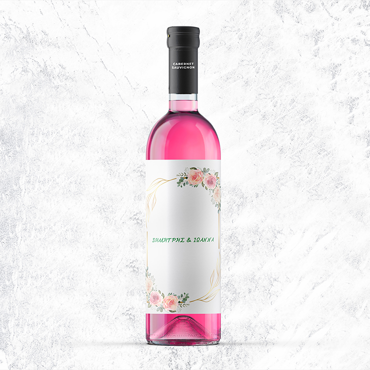Μία αυτοκόλλητη ετικέτα που θα διακοσμήσει τα μπουκάλια των κρασιών την ημέρα του γάμου.