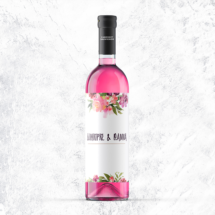 Μία αυτοκόλλητη ετικέτα που θα διακοσμήσει τα μπουκάλια των κρασιών σας προσαρμοσμένη στο θέμα γάμου σας.