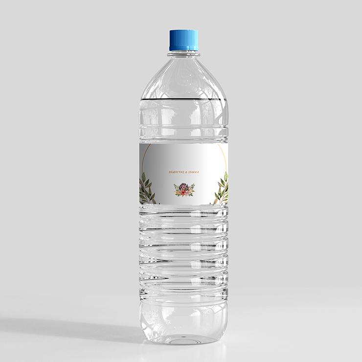 Μία αυτοκόλλητη ετικέτα που θα διακοσμήσει τα μπουκάλια των νερού γάμου σας.
