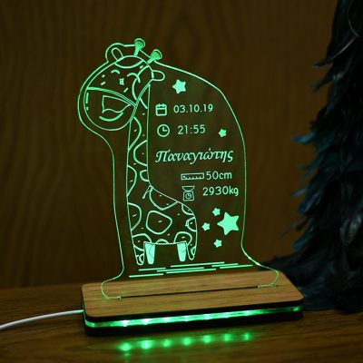 Απόκτησε αυτό το ξύλινο προσωποποιημένο φωτιστικό Led με χάραξη σε πλέξιγκλας. Το φωτιστικό είναι χαμηλής κατανάλωσης, με 7 διαφορετικά χρώματα φωτισμού και έχεις τη δυνατότητα να χαράξεις σε αυτό το μήνυμα ή το όνομα που επιθυμείς. Χρησιμοποίησέ το ως φωτιστικό κομοδίνου στην κρεβατοκάμαρα, ή το παιδικό δωμάτιο, και δημιούργησε την πιο όμορφη ατμόσφαιρα χάρη στο ροοστάτη. Με τη βοήθεια του dimmer μπορείς να προσαρμόσεις την ένταση φωτισμού και να απολαύσεις μια άνετη και χαλαρή ατμόσφαιρα.