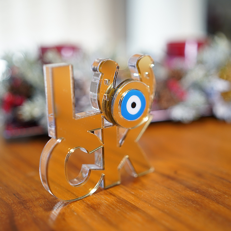 Μοναδικό στολίδι σε σχήμα Luck , σε Ακρυλικό διάφανο .