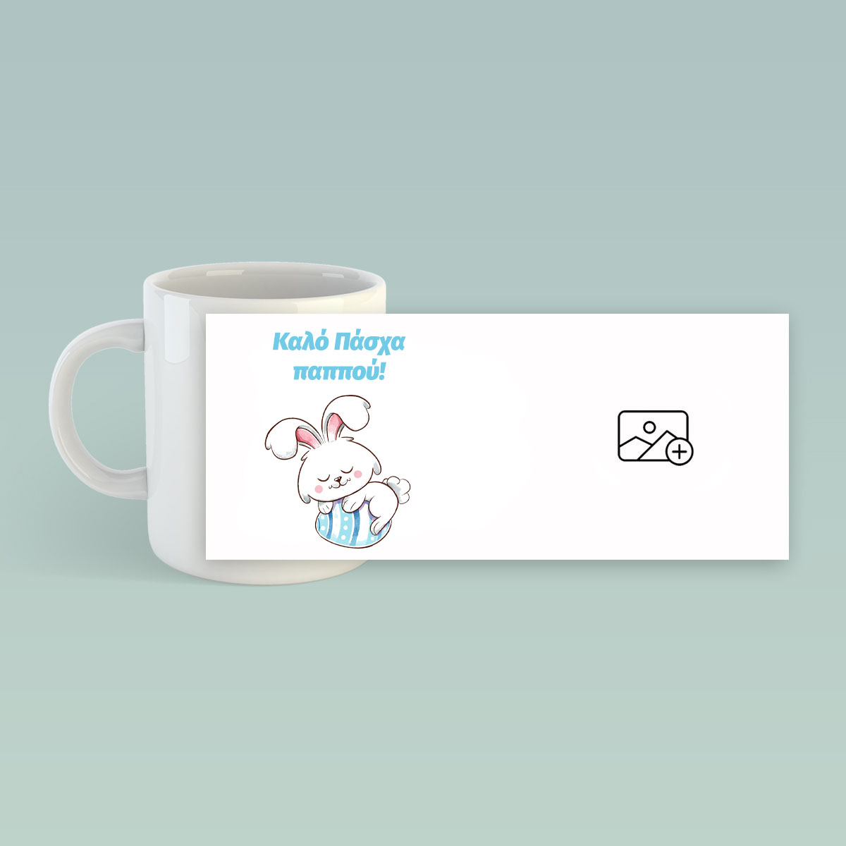 Δημιούργησε τη δική σου εξατομικευμένη προσωποποιημένη κούπα προσθέτοντας την αγαπημένη σου φωτογραφία ή όποιο στίχο – moto επιθυμείς! Δώσε μία προσωπική πινελιά στα δώρα σου, γιατί τι καλύτερο να ξεκινάει η κάθε μέρα με την πιο θετική, γλυκιά ή διασκεδαστική διάθεση! Προσάρμοσε στην πασχαλινή κούπα την εικόνα της επιλογής σου και κάνε τα καλύτερα δώρα στον παππού σου! Η κούπα δεν ξεβάφει, δεν φθείρεται και είναι κατασκευασμένη από ειδικό υλικό για να κολλούν ομοιόμορφα οι φωτογραφίες σου.