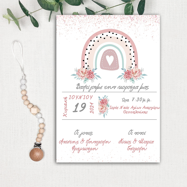 Προσκλητήριο Βάπτισης Rainbow Little Princess