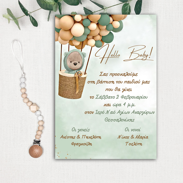 Προσκλητήριο Βάπτισης Hello Baby Bear