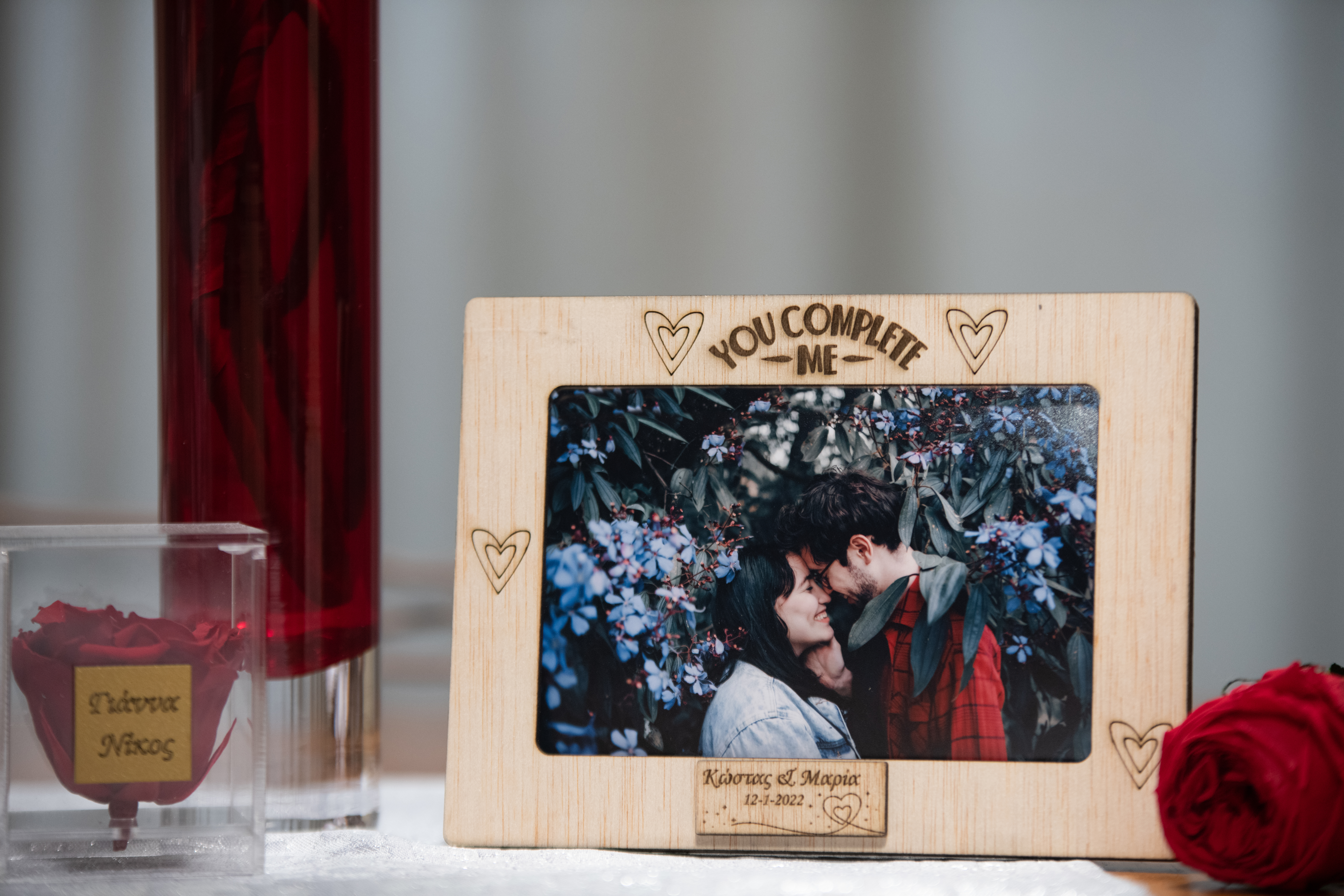 Απόκτησε τη δική σας επιτραπέζια ξύλινη κορνίζα με φωτογραφία και ονόματα. Κάνε δώρο στο αγόρι ή στην κοπέλα σου μία κορνίζα μοντέρνα, σκαλιστή με laser για να διακοσμήσει το χώρο του/της με τις αγαπημένες σας στιγμές! Πρόσθεσε την αγαπημένη σας φωτογραφία και τα ονόματά σας ή το μήνυμά σου και δημιούργησε το καλύτερο προσωποποιημένο δώρο, ειδικά για την ημέρα του Αγίου Βαλεντίνου.